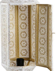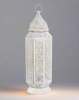 Our Arabian Style Table Lamp adds a timeless, elegant feel to your living space. Crafted from metal and finished with a weathered white and golden hue, its classic design will light up your room with its unique aesthetic. Perfect for bringing an old-world charm to your home.